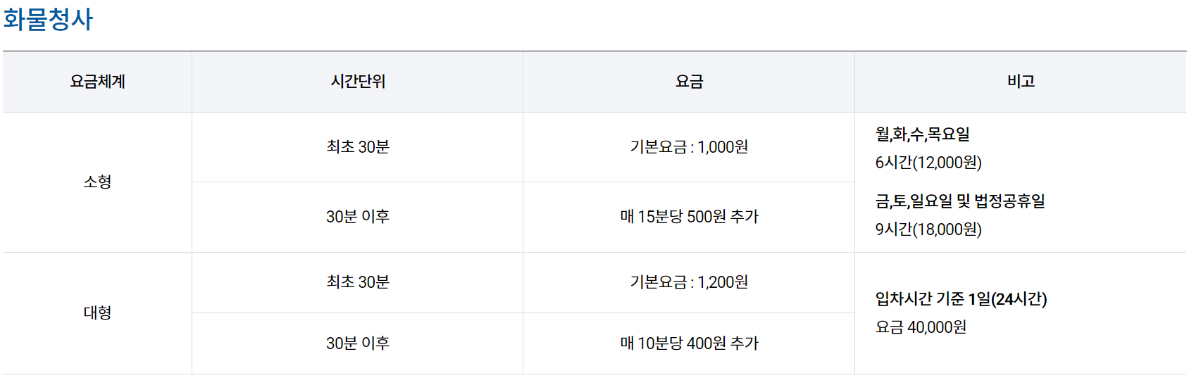 화물청사 주차장도 있으며 일반적으로 항공 이용객들의 경우 활용이 저조하나, 화물청사 주차장을 장기간으로 활용할 경우 요금이 조금 더 저렴하다고 하니 함께 알아보도록 하겠습니다.