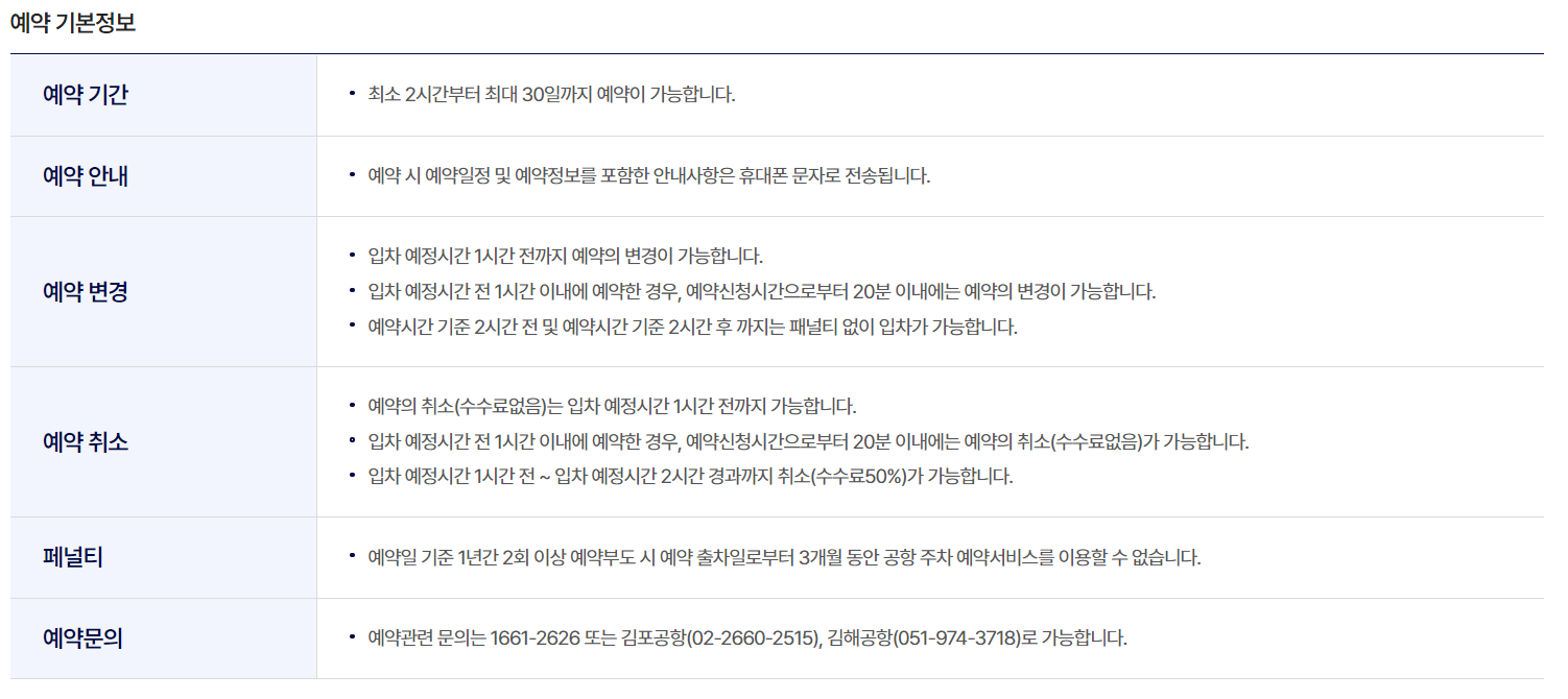 한국공항공사 홈페이지에서 공항 주차 예약을 할 수 있습니다. 일정의 보증금을 지불하고 주차예약을 신청한 후 이용 완료 시 환급받을 수 있습니다.