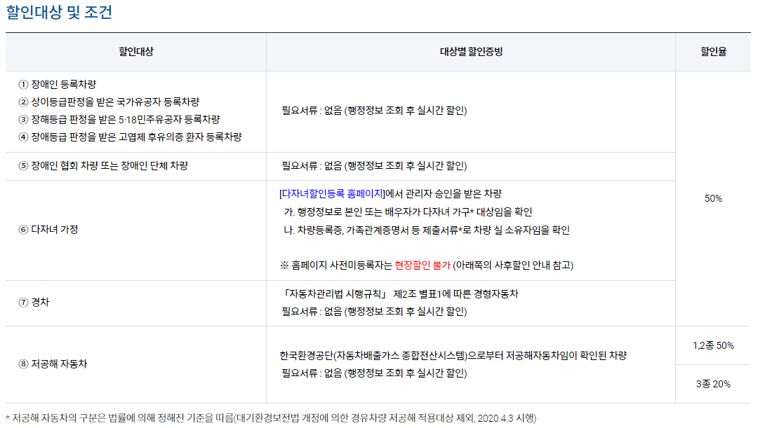 할인 적용 시 필요한 서류를 필히 챙기셔서 적용받으시길 바라며 혹여 서류 미비로 인해 할인 적용을 받지 않은 경우 사후 할인을 받을 수 있으니, 각각의 사유에 해당하는 관련 서류 일체를 출차 후 30일 이내에 사후할인 신청 페이지에서 신청하시면 출차 기록과 대조하여 할인 금액을 환불해 줍니다.