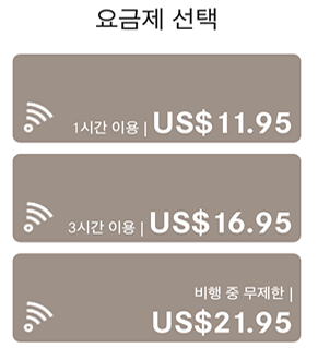 - 요금제 구매 방법 : A350 탑승 후 개인 디바이스를 통해 접속하여 구매 가능