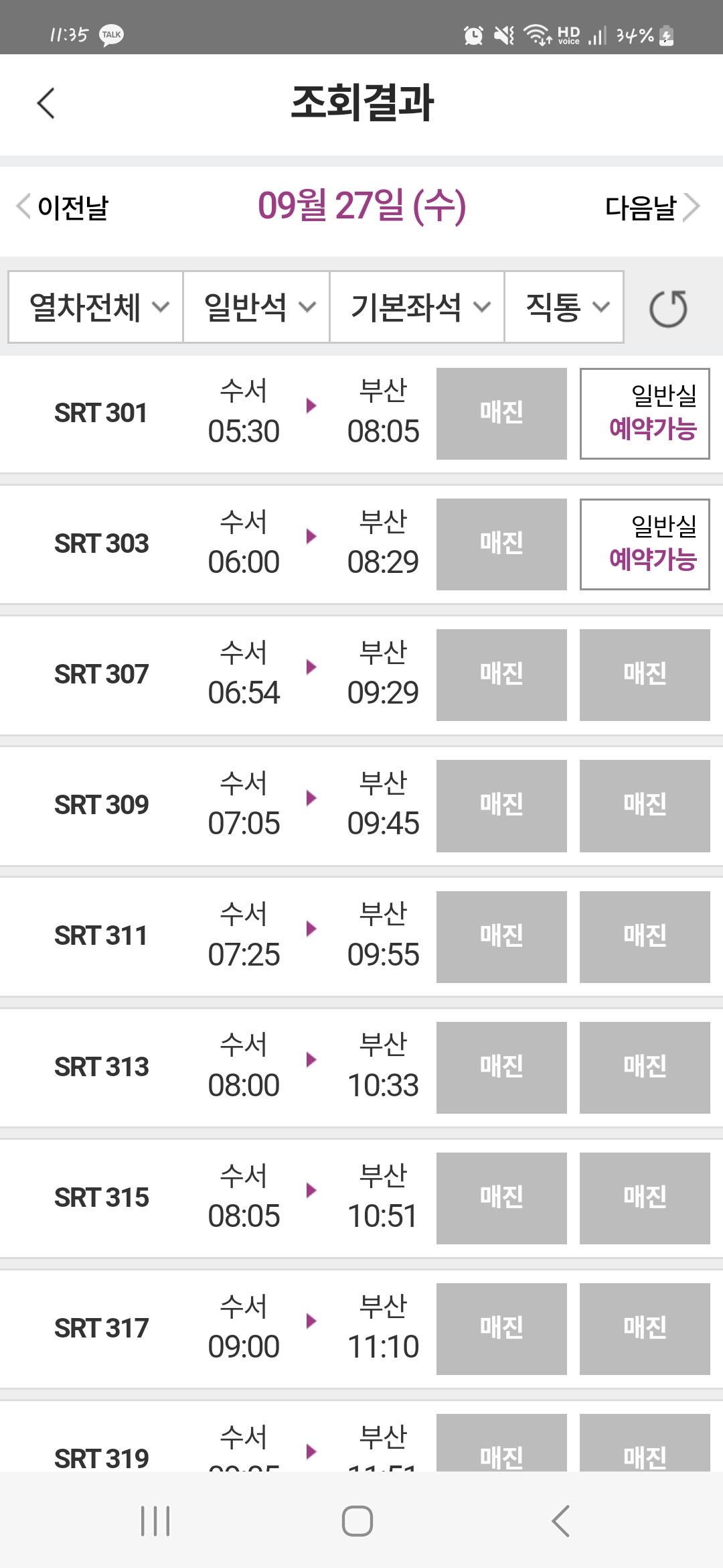 특실, 입석들이 모두 매진이라면 예약대기를 신청해 볼 수 있습니다.